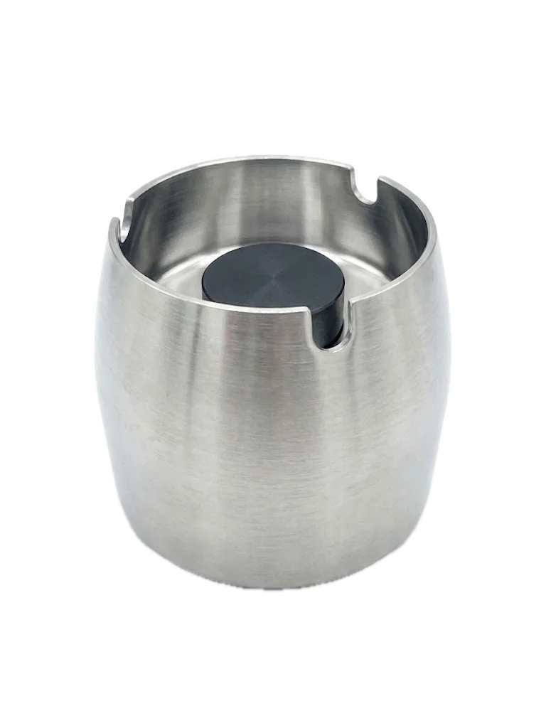 מאפרה גדולה מפלדת אל חלד בעיצוב נקי ואלגנטי, שמתאימה לשימוש בבית או בחוץ.